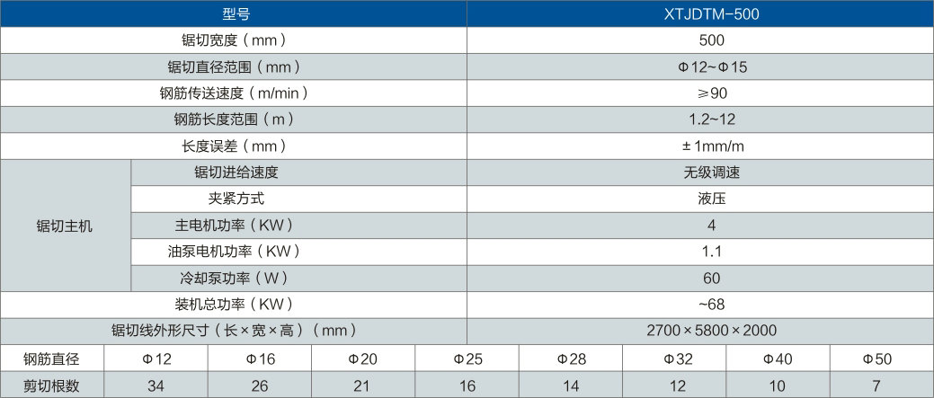 該設備是我公司針對國內螺紋鋼筋的連接,整體結合國際領先技術,自主研發(fā)的集電氣、液壓、氣動為一體全自動化科技產品,具有國際先進水平,國內領先??勺詣油瓿射摻钪睆?2~50mm,強度HRB335、HRB400、HRB500的鋸切,具有切削效率高、自動定尺、節(jié)能省料、操作簡單等特點,可根據(jù)生產需求搭配鐓粗、套絲、打磨一起使用,全自動送料輥道,避免原料的二次搬運;鋼筋的輸送、翻轉、傳遞等全部由機械完成,大幅度提高了效率;鋼筋輸送滾采用 V 型耐磨輥進行結構緊湊、傳輸速度快、耐磨、減噪音、壽命長等特點;鐓粗、縮徑滾絲、打磨主機頭實現(xiàn)了自動夾緊,設備實現(xiàn)了鋼筋鐓粗、縮徑滾絲、打磨等功效自動完成大大提高工作效率,整套設備1-2人即可操作節(jié)約大量人工成本,深受廣大客戶喜愛。